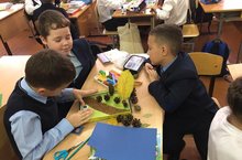 Любимой формой занятия детей во многих эколого-биологических объединениях является "Экологическая мастерская". Вот и учащиеся объединения " Светлячок", руководитель Костюхина Л.Л., создают своими руками макет леса.