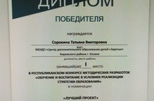Поздравляем Татьяну Викторовну с победой в Республиканском конкурсе методических разработок «Обучение и воспитание в условиях реализации стратегии образования» на базе ИРО РТ.