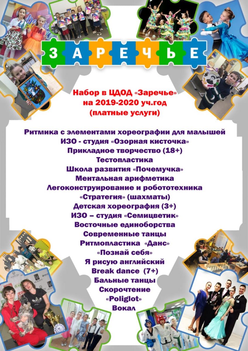 Набор в ЦДОД "Заречье" на 2019-2020 учебный год (платные услуги)