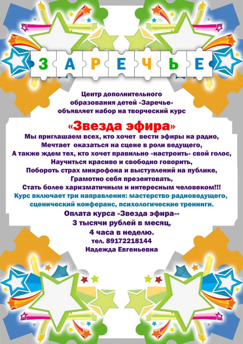 ЦДОД "Заречье" объявляет набор на творческий курс "Звезда эфира"
