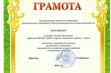 Специалисты отдела детских организаций и объединений во главе с директором ЦДОД"Заречье"Татьяной Викторовной Сорокиной награждены грамотами Республиканского центра внешкольной работы за активную гражданскую позицию и проведение мероприятий по развитию детского движения в Республике Татарстан. Поздравляем ! Желаем творческих успехов в деле воспитания подрастающего поколения.