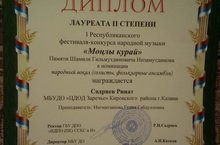 Поздравляем Рината Садриева, лауреата 2 степени Республиканского конкурса «Монлы курай», педагог Нигматзянова Г.Г. Молодец!!! Хороший подарок к Новому году!