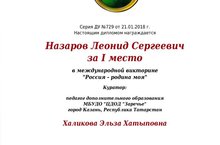 Педагог эколого-биологического отдела, объединения "Юный эколог-исследователь" - Халикова Э.Х. заняла I место в конкурсе мастер-классов "Мастер-класс, как форма обобщения педагогического опыта". Назаров Леонид, учащийся объединения "Юный эколог - исследователь" также награждён дипломом I степени в Международной викторине "Россия - родина моя".