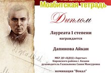 Обучающихеся объединения «Художественное слово» под руководством педагога Гареевой Зифы Сагитовны приняли участие в X Межрегиональном конкурсе чтецов «Туган телем - серле тел» и стали победителями конкурса и награждены дипломом I степени: