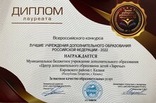 Наш Центр стал лауреатом Всероссийского конкурса «Лучшие учреждения дополнительного образования Российской Федерации-2022» 31.05.2022