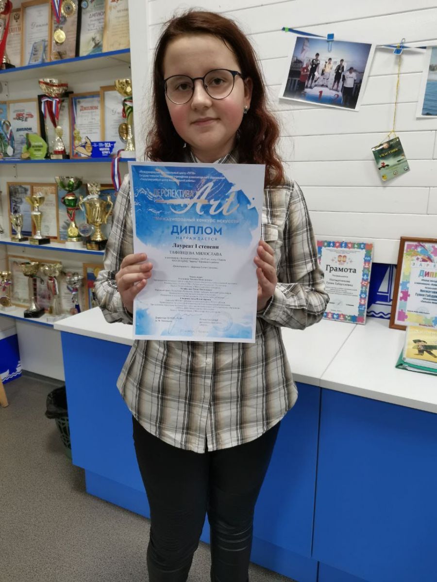 Поздравляем Ситнову Ксению, воспитанницу изостудии " Оранжевое небо" с победой в городском конкурсе " Мир прекрасен"! Ксения представила на конкурс живописную работу, посвященную современной архитектуре и скульптуре Казани. Педагог Заляева Резеда Рашидовна также награждена благодарственным письмом организаторов конкурса.