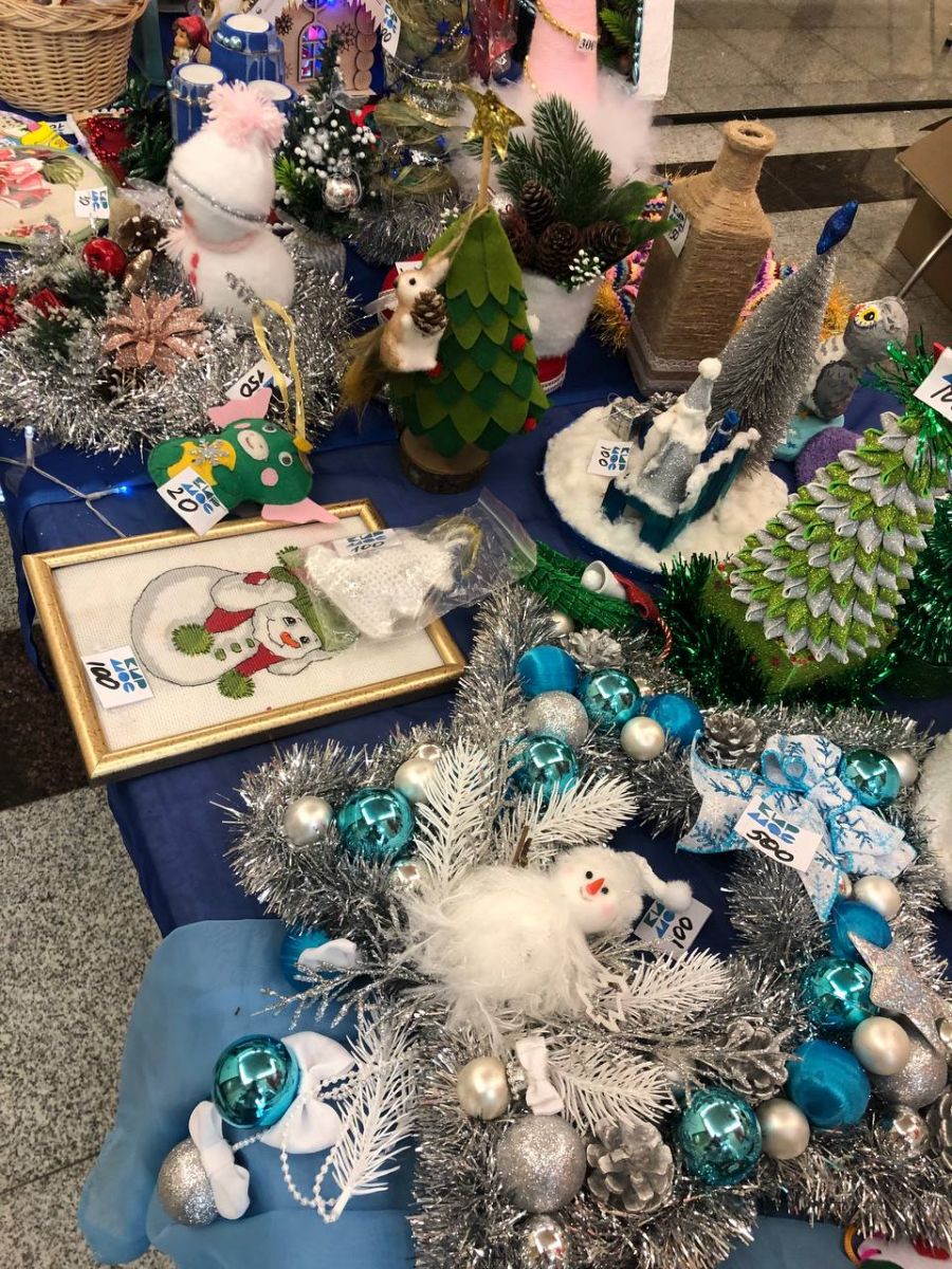Среди них можно было найти ёлочные украшения, детские игрушки, новогодние венки и многое другое. Все изделия можно было приобрести за наличные средства.