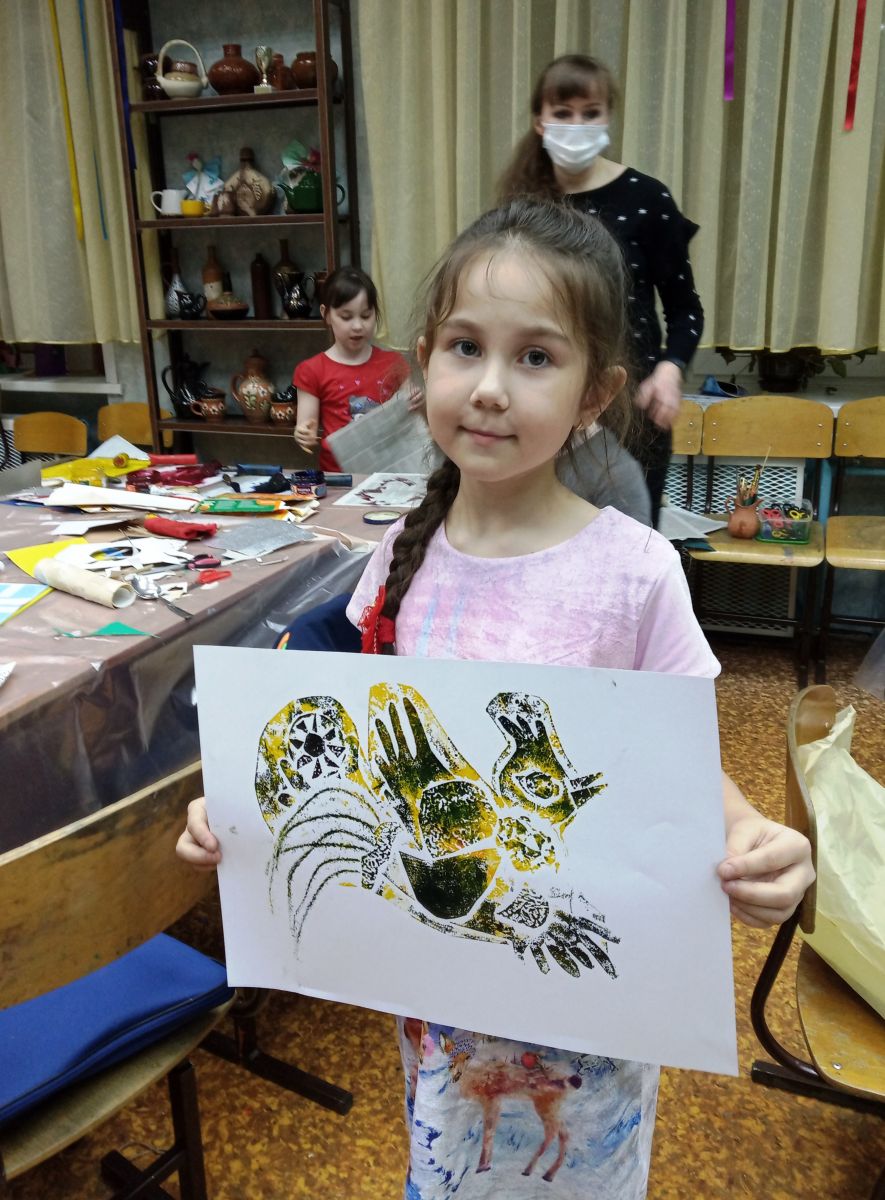 В объединении ИЗО «Ступени» группа №4 (педагог Забирова Т. А.) прошёл мастер-класс по печати с использованием столовой ложки. С тайнами печатной графики ребят познакомила художник - Карасёва Вера Владимировна. Работать в новой технике, с настоящими типографскими красками и с настоящим художником увлекательно и интересно. А какой приятный запах краски веял от наших картин, просто замечательно!