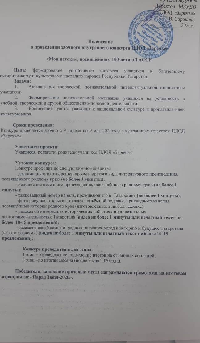 Муниципальное бюджетное учреждение дополнительного образования «Центр дополнительного образования детей «Заречье» Кировского района» г. Казани