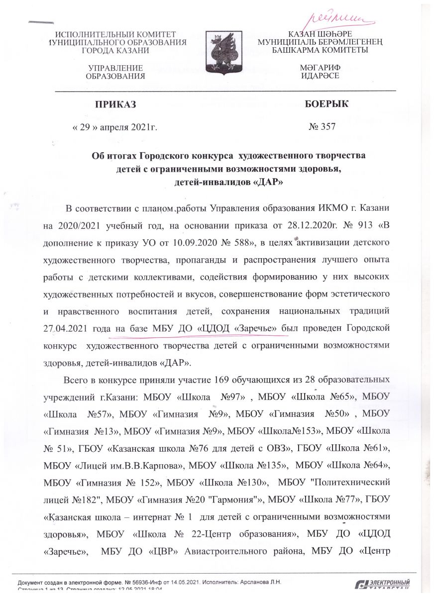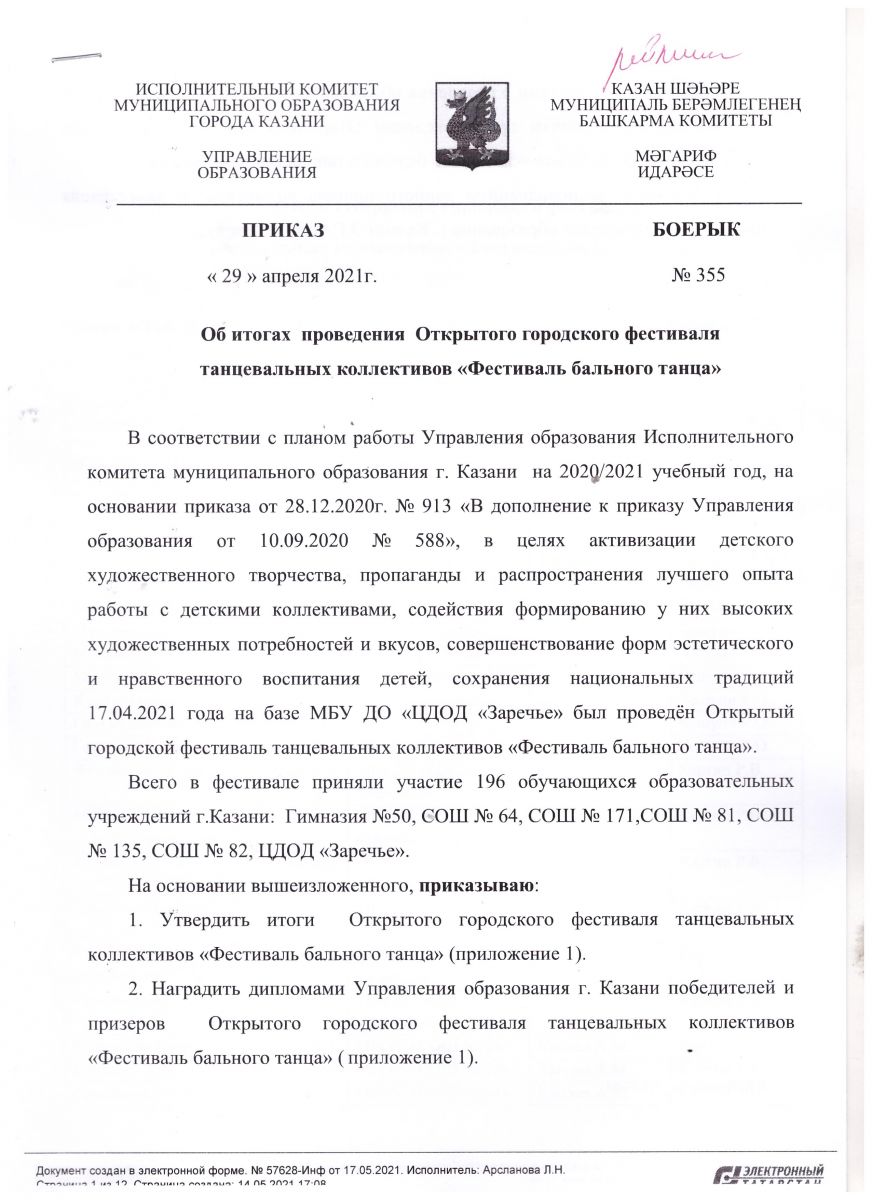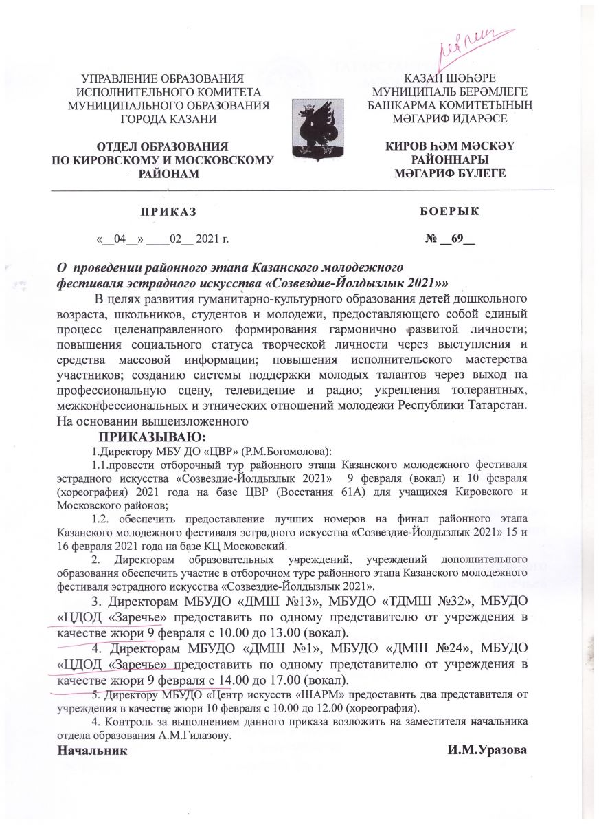 Приказ о проведении городских мероприятий художественно-эстетической направленности