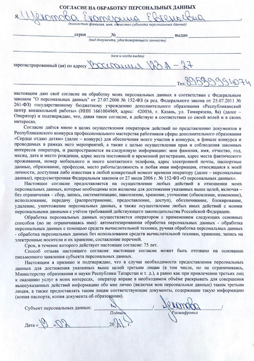 Согласие на обработку персональных данных - Щёкотова Екатерина Евгеньевна