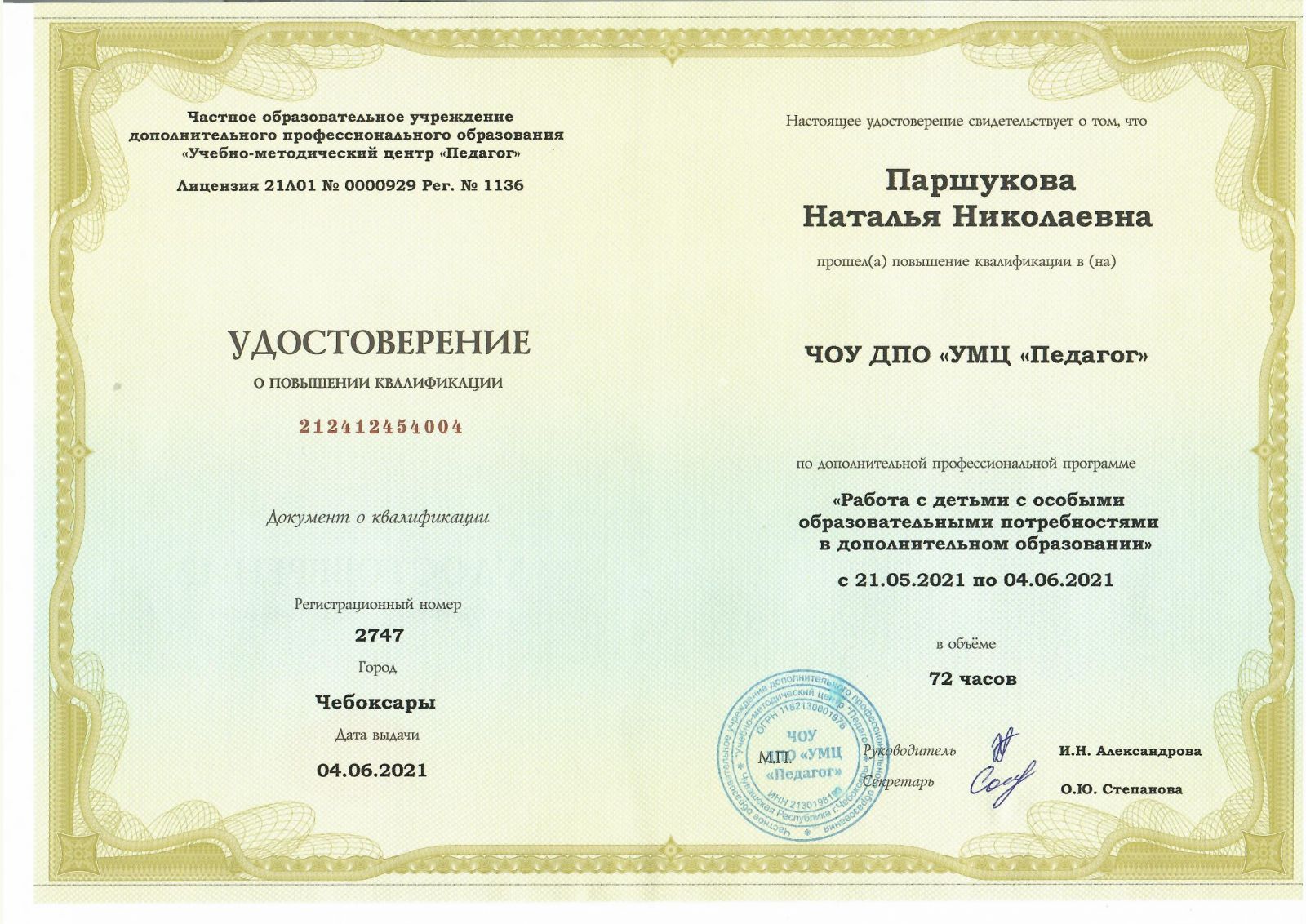 Хамидуллина М.Д. Удостоверение о краткосрочном повышении квалификации