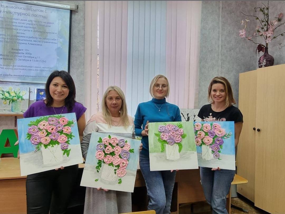 Опубликовано: 22.10.2022В эту субботу педагог Григорьева К.А. провела мастер-класс. Все участники написали замечательные картины, освоили технику барельеф, остались довольны своим творчеством, побыли в приятной атмосфере.