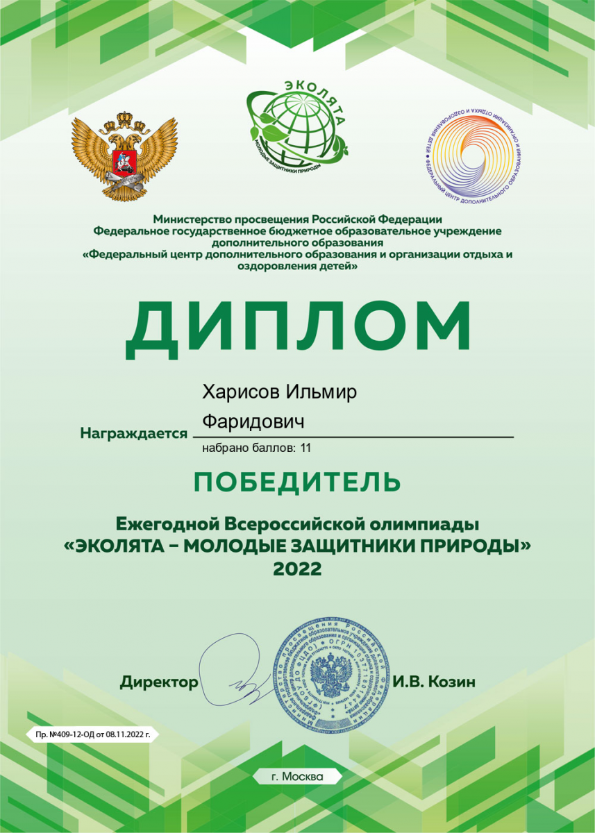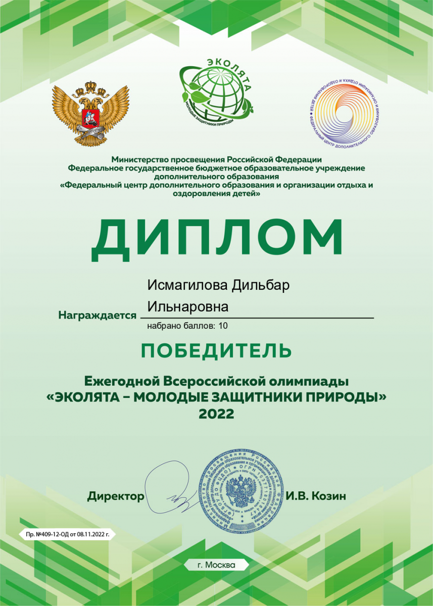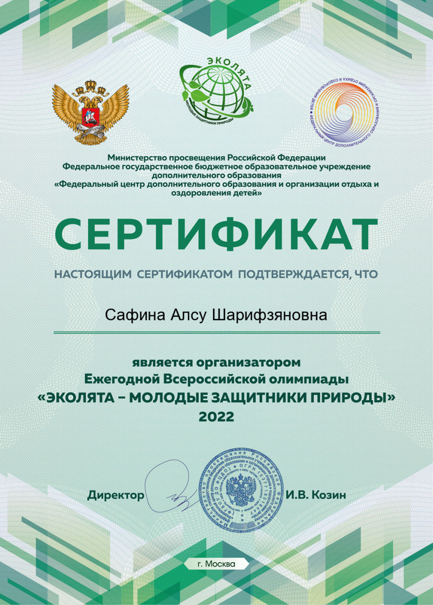 Опубликовано: 22.11.2022Поздравляем учащихся объединения «Ромашка», педагога Сафину Алсу Шарифзяновну с новыми победами! Они стали призёрами и победителями «Ежегодной Всероссийской олимпиады «Эколята-молодые защитники природы 2022»