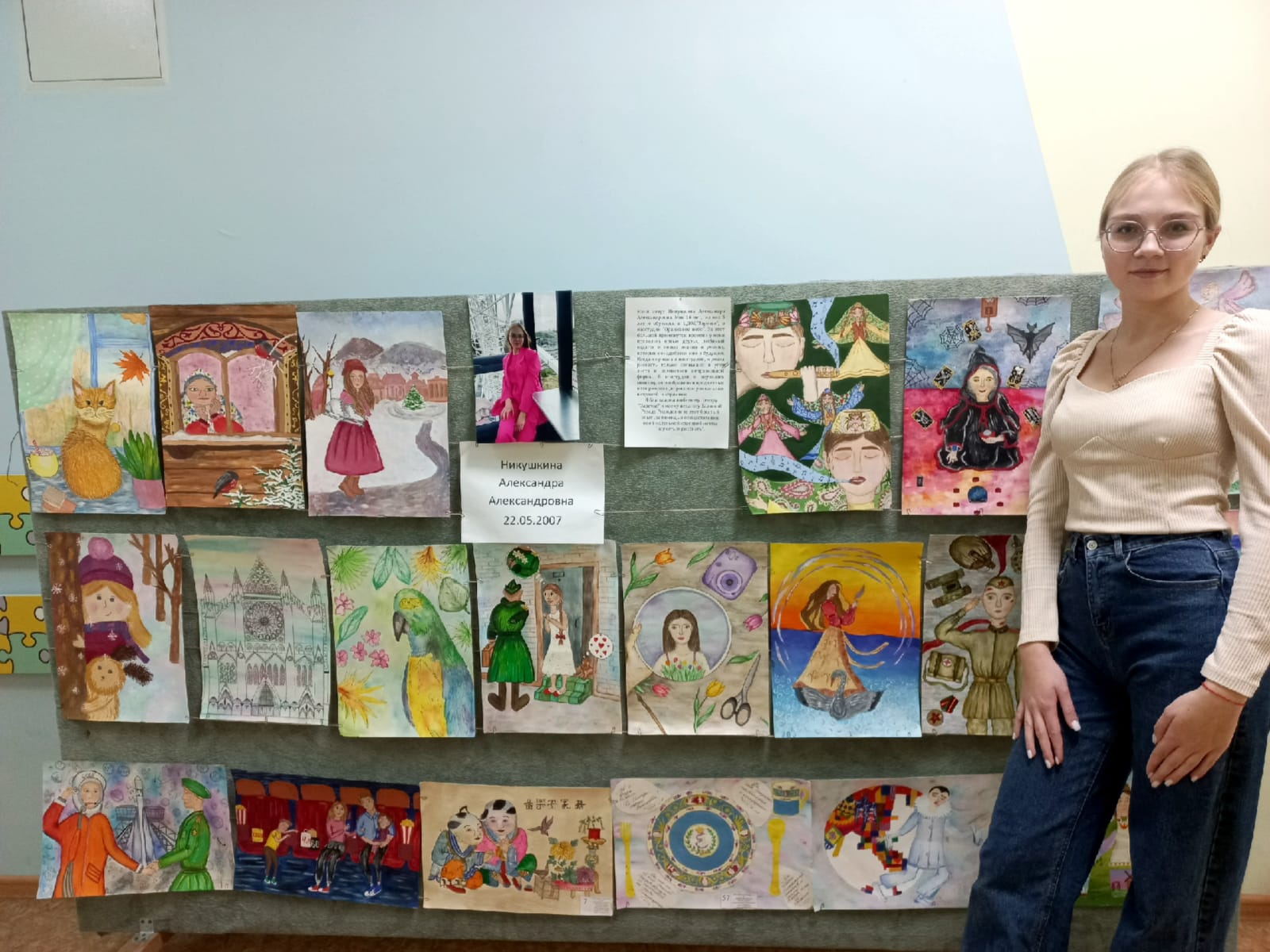 Опубликовано: 07.12.2022Первая персональная выставка - это всегда круто! Знакомьтесь, Никушкина Александра, юная художница изостудии "Оранжевое небо" нашего Центра, победительница множественных Международных, Всероссийских и Республиканских конкурсов.