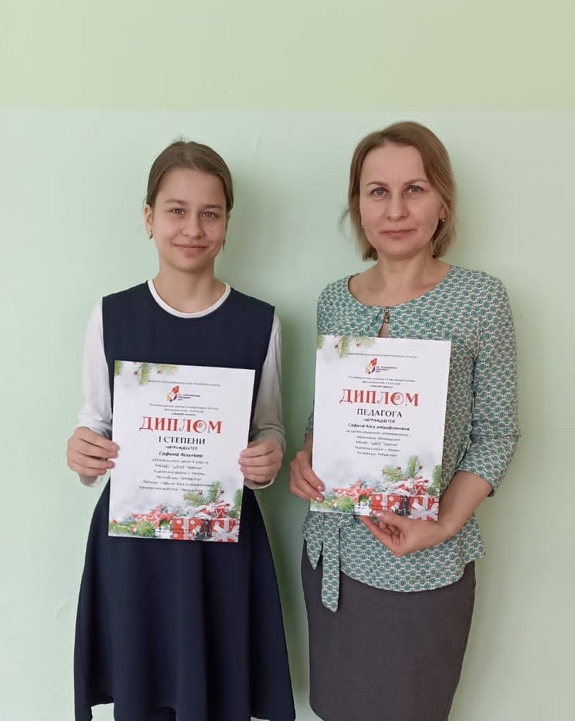 Опубликовано: 07.03.2023Поздравляем Сафину Асылъяр, учащуюся объединения "Ромашка" и педагога Сафину А.Ш. с победой в республиканском заочном литературном конкурсе для школьников 1-6 классов "Зимняя сказка".