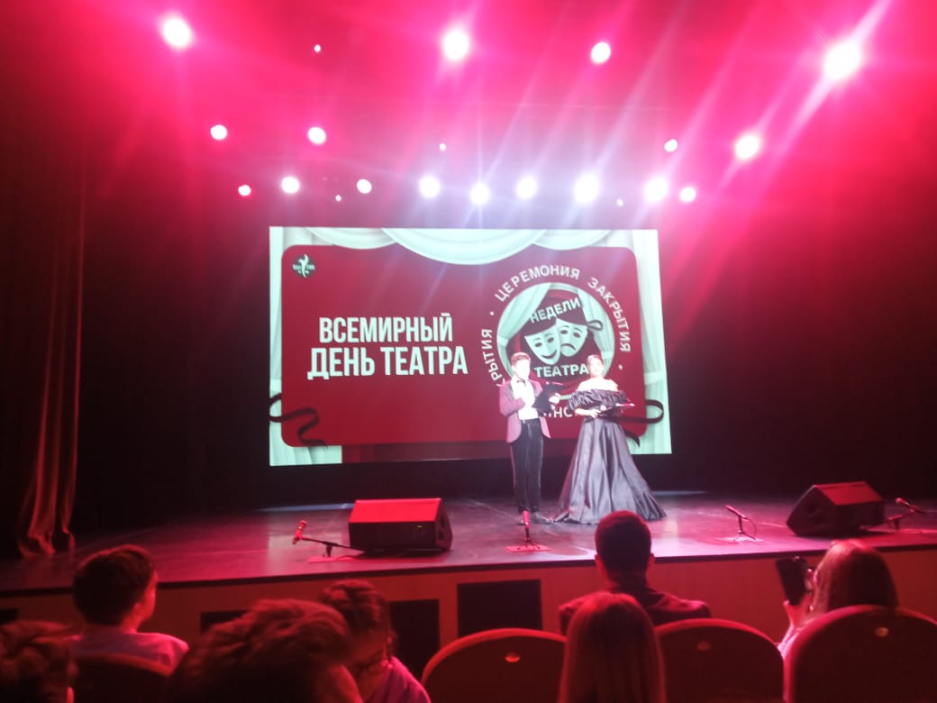 Опубликовано: 28.03.2023Сегодня в КазГИК состоялась Церемония закрытия Недели Театра. На церемонии присутствовали руководитель рабочей группы кураторов по реализации проекта "Школьных театров г. Казани" Халилова Надежда Евгеньевна и руководители школьных театральных коллективов г. Казани.