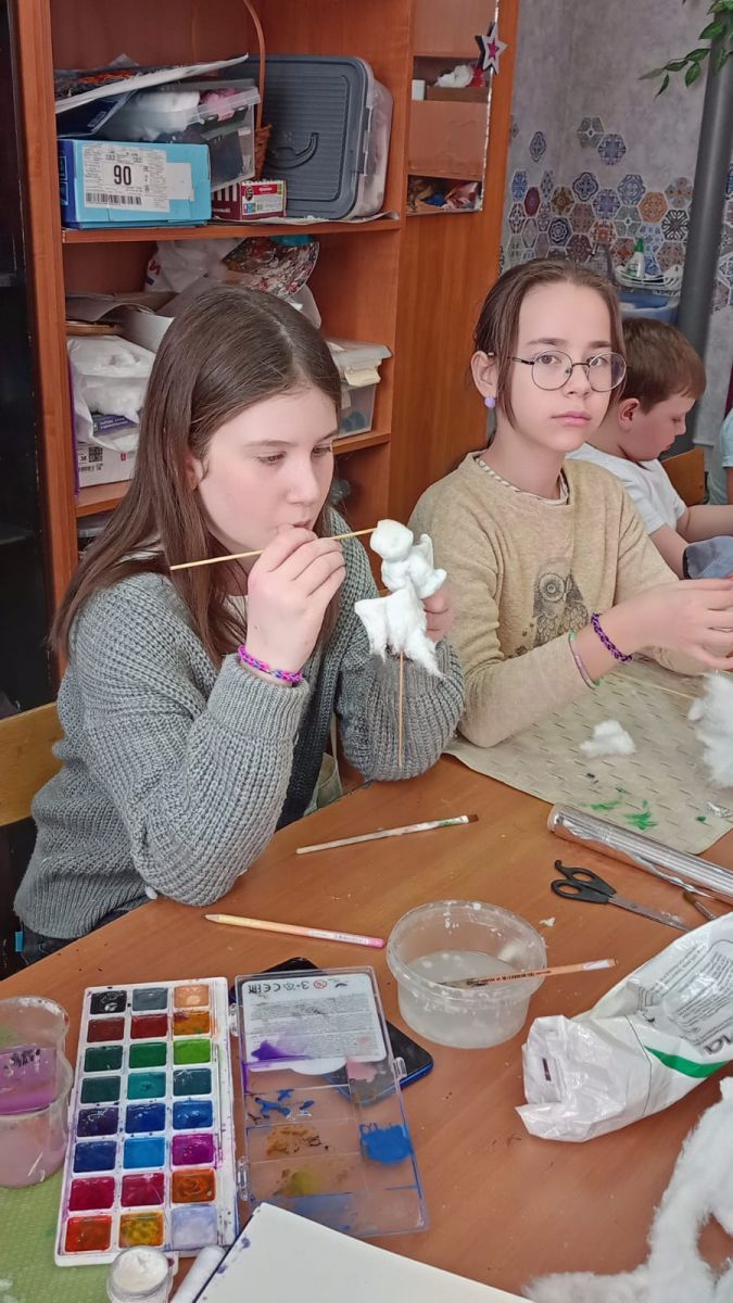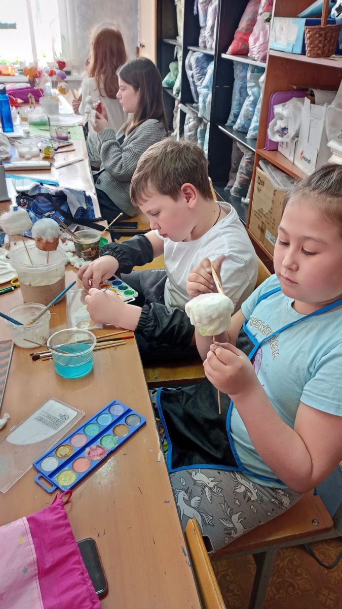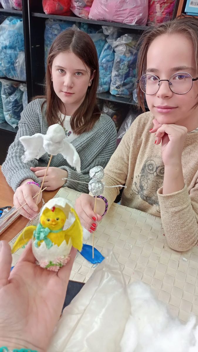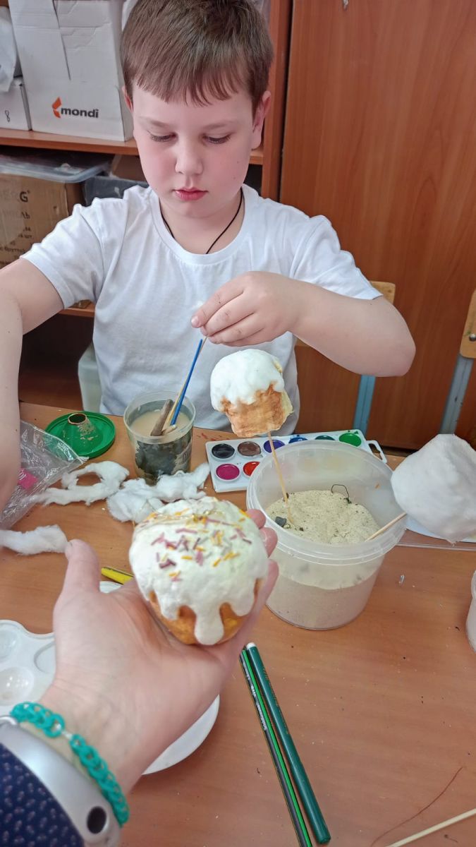 Опубликовано: 19.04.2023В честь светлого дня Пасхи ребята из объединения "Творчество без границ" (педагог Кузнецова Ольга Валерьевна) создавали работы на пасхальную тематику. Из ваты получились аппетитные куличи и забавные цыплята.