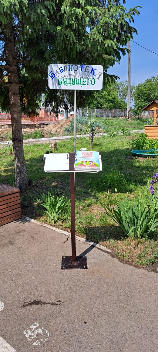 А прямо под ёлкой разместилась небольшая современная библиотека, где сканируя QR код вы можете почитать своему ребёнку стихи и сказки. И даже поиграть в интересные игры.