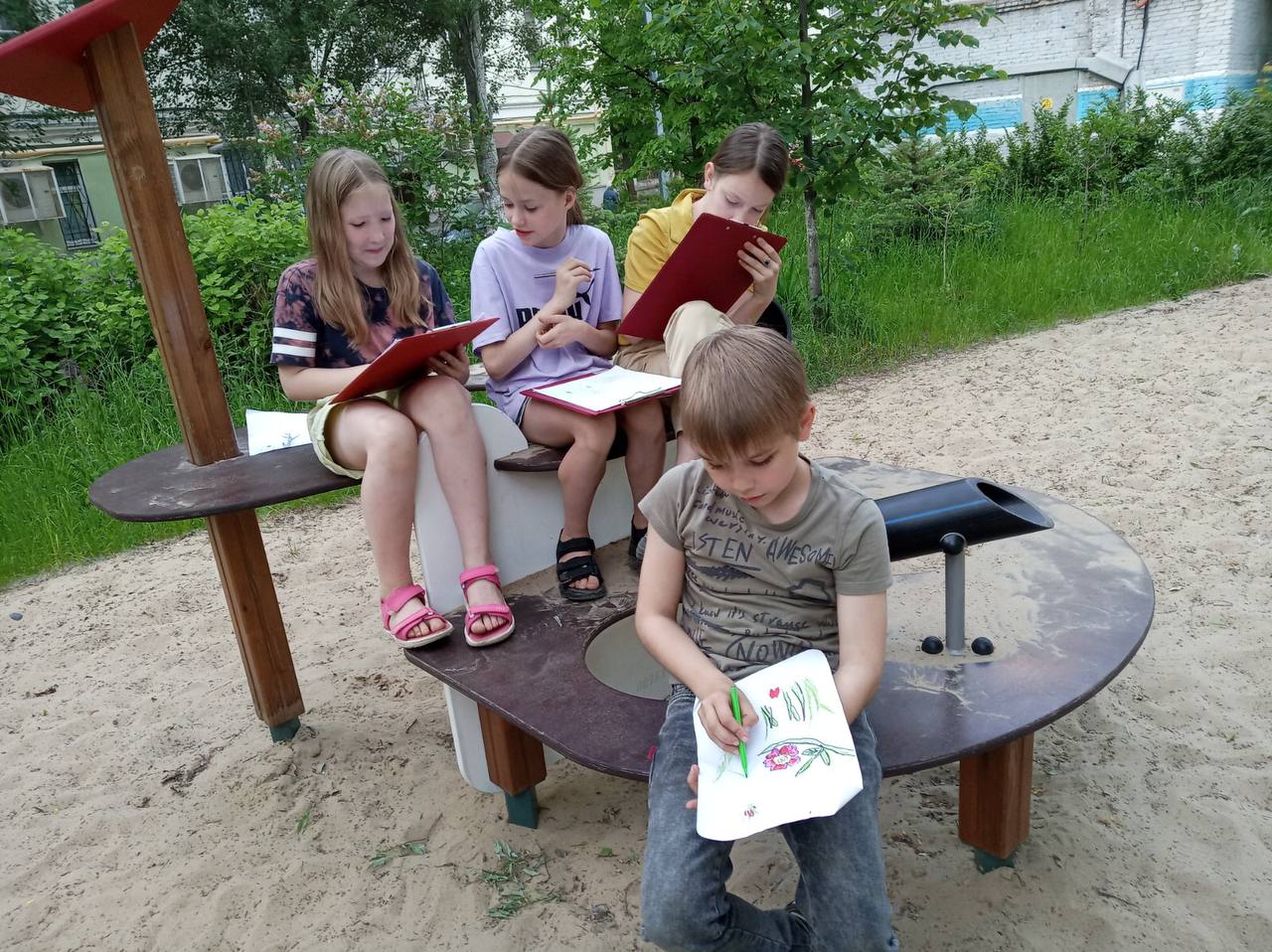 Опубликовано: 24.05.2023Наступили жаркие майские дни! Скорее на улицу! В объединение ИЗО «Ступени» начались долгожданные пленэры. Рисовать цветы, травы, деревья, насекомых… это так увлекательно и забавно! Вокруг столько всего интересного и прекрасного и нам нужно всё увидеть, потрогать и, главное, успеть всё зарисовать.