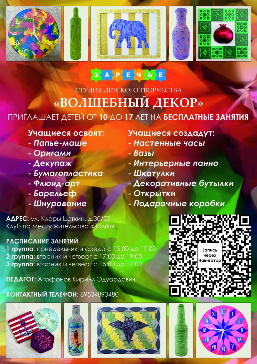 ЗАПИСЬ ЧЕРЕЗ СИСТЕМУ НАВИГАТОР: https://р16.навигатор.дети/program/24331-volshebnyi-dekor