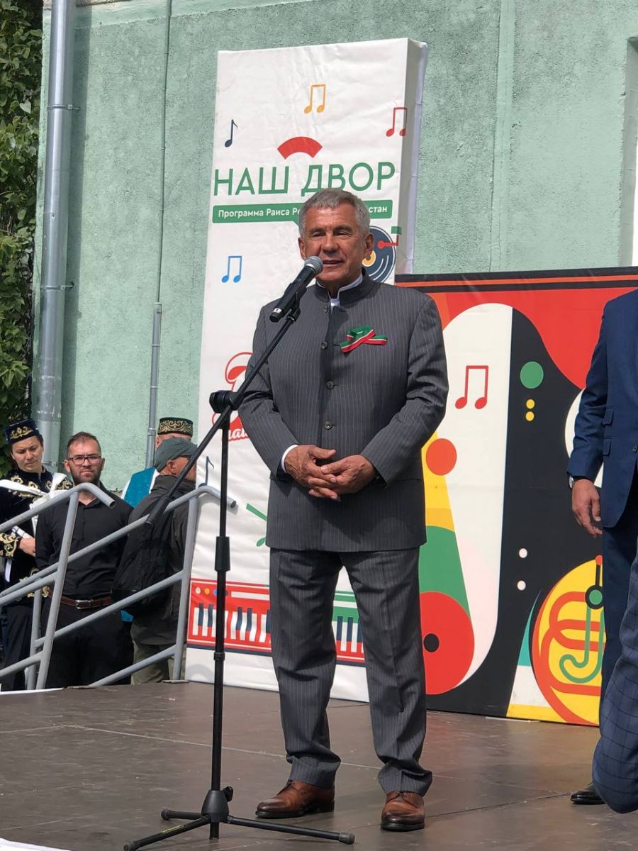 В столице Татарстана в рамках празднования Дня Республики состоялось торжественное открытие обновлённого по республиканской программе двора на улице Серова. В мероприятии участвовали Раис РТ Рустам Нургалиевич Минниханов и мэр Казани Ильсур Раисович Метшин.
