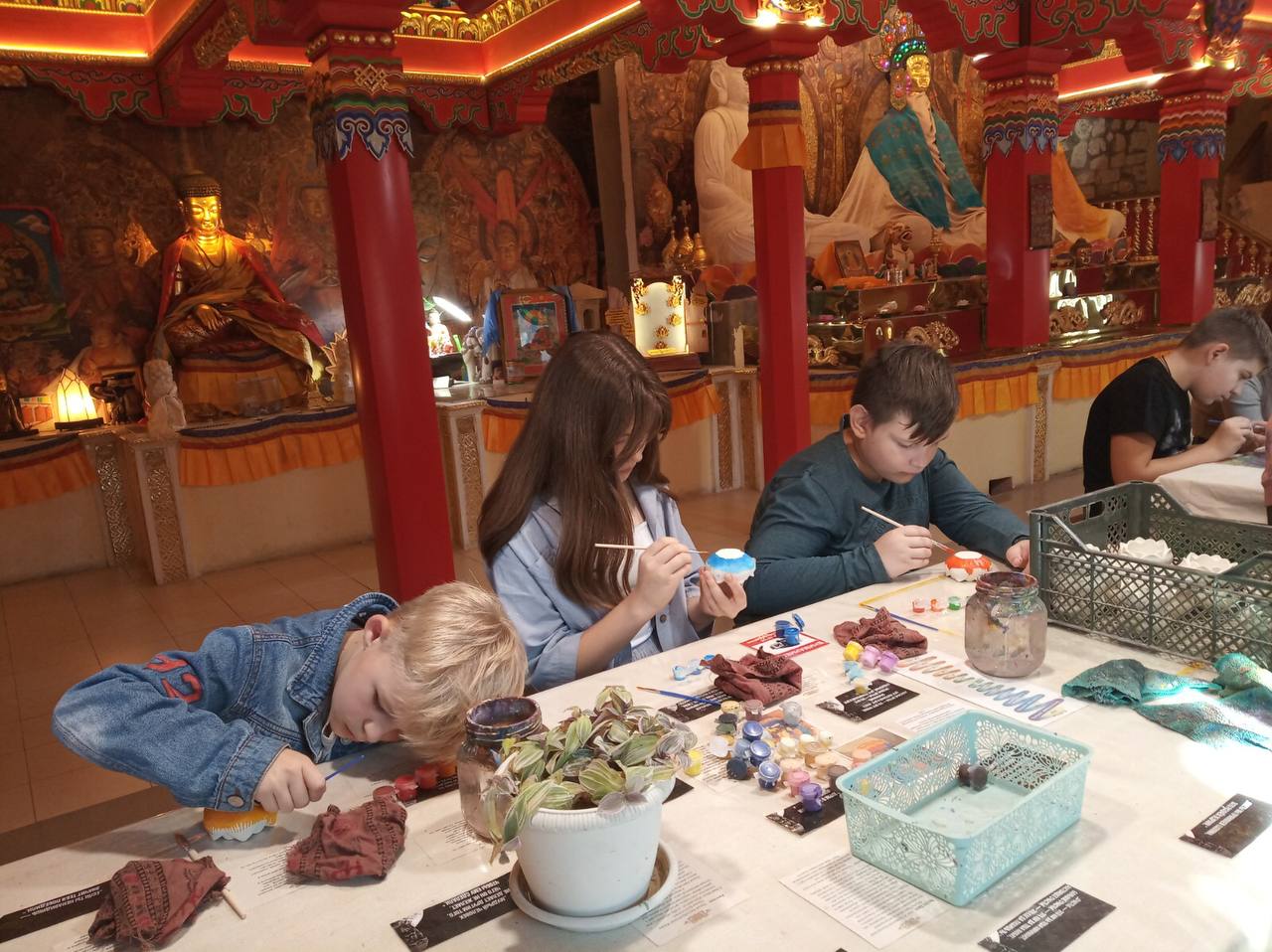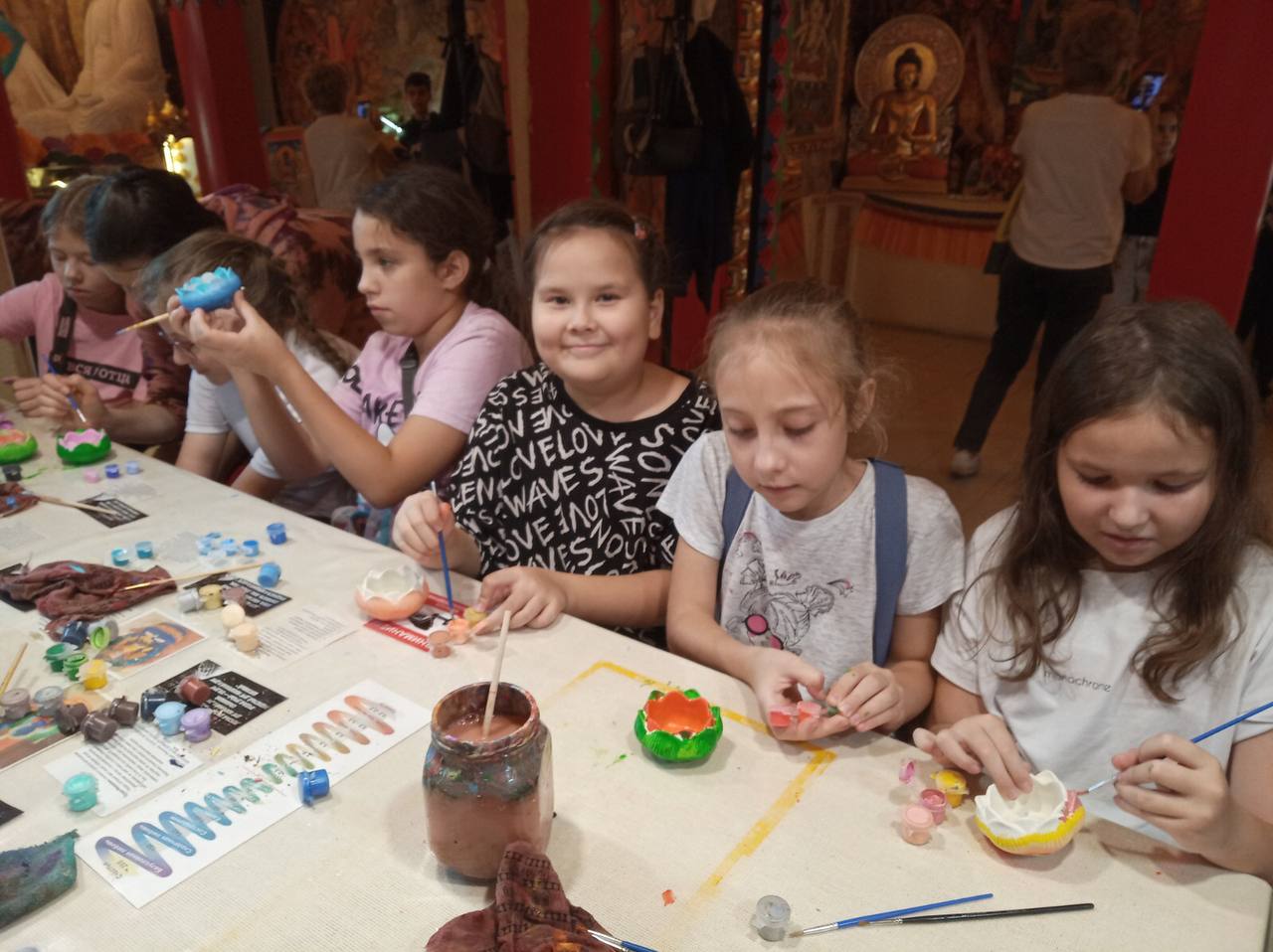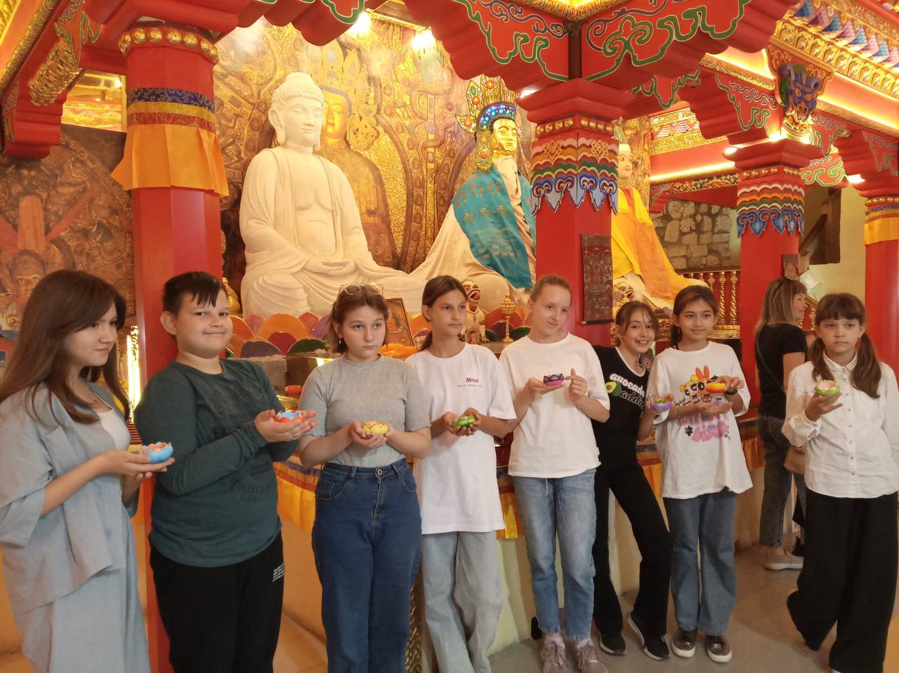 Как интересны осенние путешествия! Ребята объединения ИЗО «Ступени» группа №1 и №3 (педагог Забирова Т. А.) посетили необычное архитектурное сооружение в посёлке Старое Аракчино - «Храм всех религий». Это чудо: узорчатые комнаты, залы с картинами, причудливые лестницы, витражи, мозаики, огромные сфинксы, золотое дерево… Здесь можно не только побродить по тайным коридорам, но и заняться творчеством - расписать лотос! Уютно устроиться в буддийском зале, взять в руки кисточку, и вдруг в руках окажется прекрасный цветок! Это - просто чудо!
