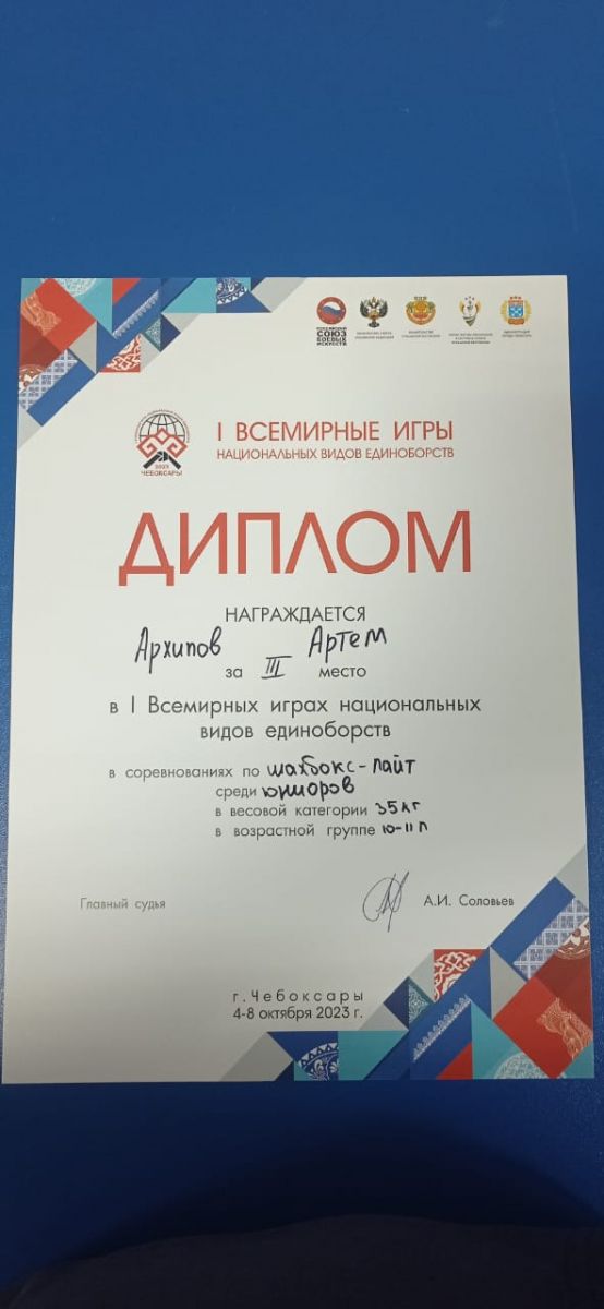 Опубликовано: 06.10.2023На I Всемирных играх национальных видов единоборств по шахбоксу наши ребята объединения "Бокс" (педагог Ахметшин Руслан Искандерович) заняли призовые места: