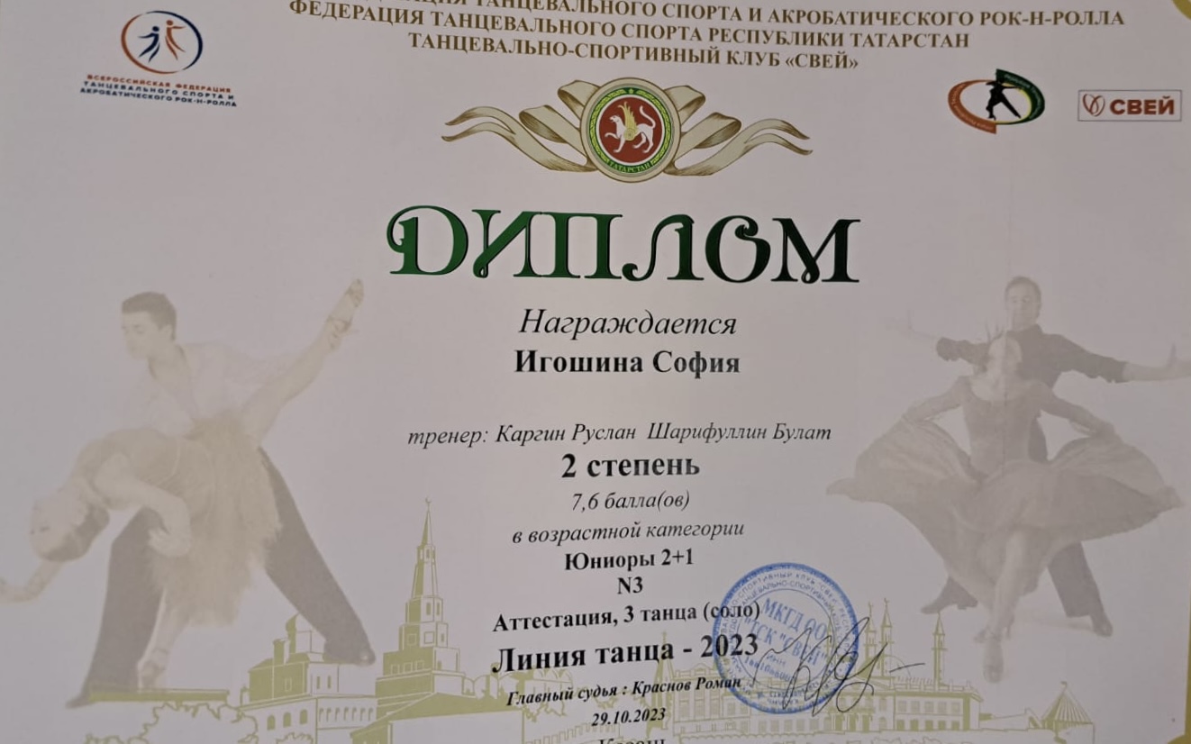 Опубликовано: 30.10.2023Поздравляем учащихся объединения "Лагуна" пдо Каргин Р.В. с успешным выступлением на Всероссийском турнире "Линия танца". Молодцы!