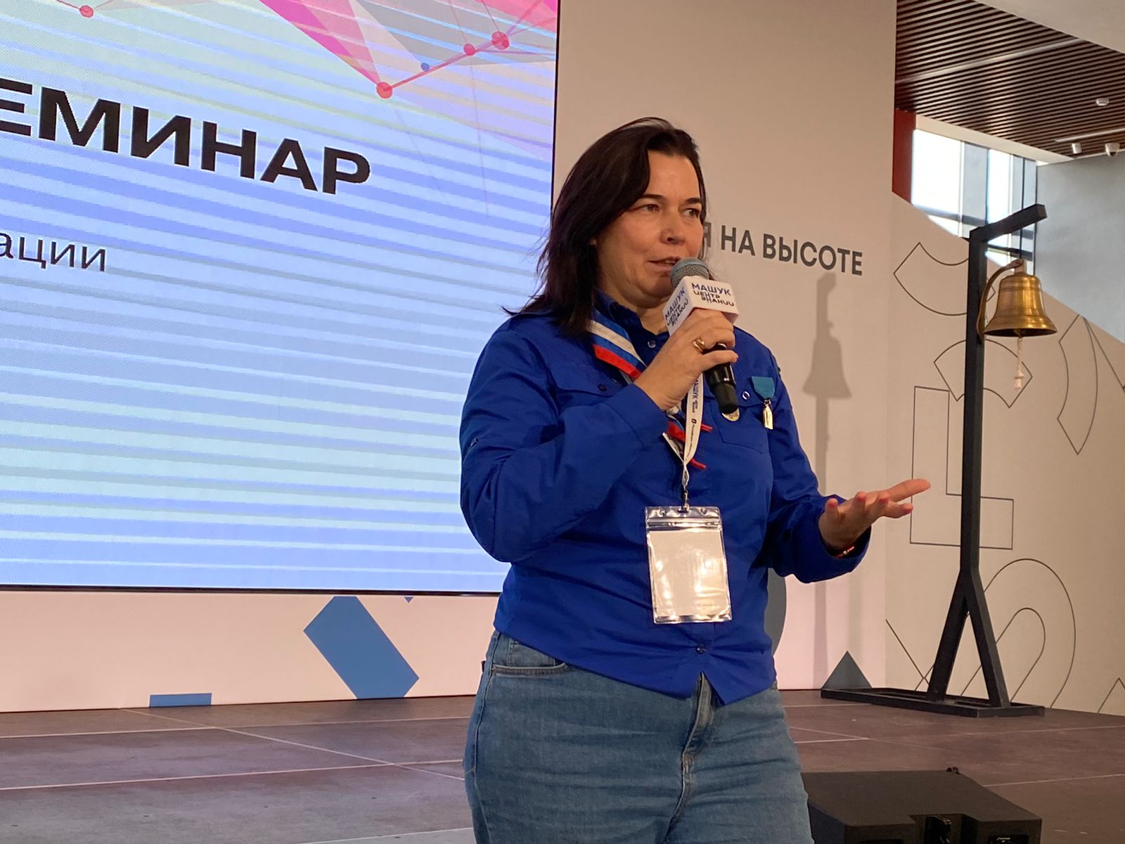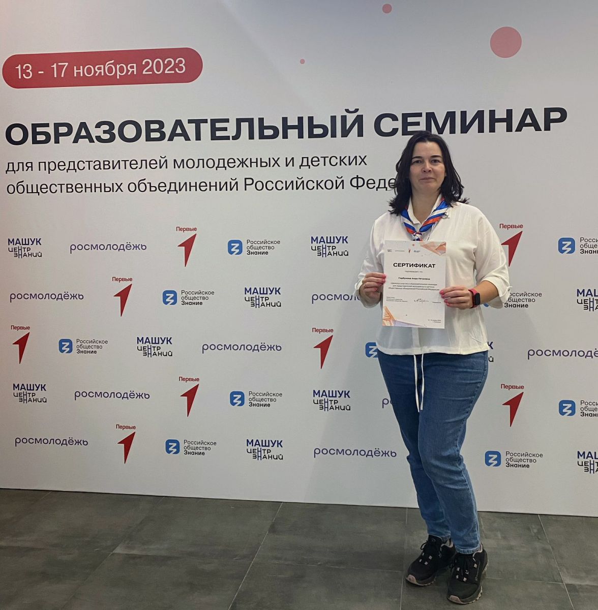 Опубликовано: 17.11.2023Педагог центра «Заречье» Аида Петровна Горбунова приняла участие во Всероссийском Образовательном семинаре для представителей молодежных и детских общественных объединений Российской Федерации в Центре Знаний «Машук» (г. Пятигорск), организованном Движением Первых.
