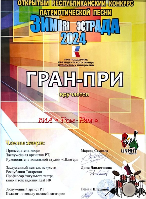 Гран-при конкурса получил вокально-инструментальный ансамбль "Ром Рам", состоящий из педагогов нашего Центра!