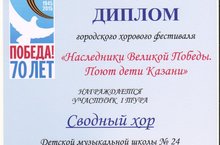 Поздравляем с успешным выступлением Хор "ДМШ №24" в районном этапе городского конкурса хоровых коллективов "Наследники Победы.Поют дети Казани".