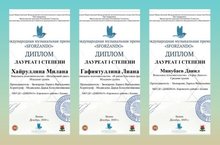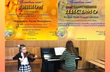 Не устаем поздравлять с отличными результатами наших дорогих учащихся. В очередной раз радуют своими достижениями наши юные вокалисты. В Международном конкурсе "Музыкальная премия SFORZANDO", состоявшейся 12 декабря, участники сразу в двух номинациях, заслуженно были удостоены Лауреатов. Вот эти звонкие голоса: Хайруллина Милана - Лауреат 1 и 2 степени, Минубаев Данил - Лауреат 1 и 2 степени, Гафиятуллина Лиана - Лауреат 1 и 2 степени. Благодарственные письма за большой вклад и высокие достижения вручены преподавателю Звонаревой Л.В. и концермейсте