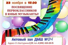 Посвящение первоклассников в юные музыканты - праздник, ставший за много лет традиционным. 23 ноября это важное мероприятие состоялось в основном здании музыкальной школы.