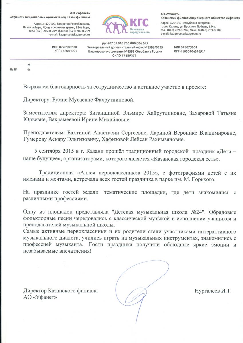 Муниципальное бюджетное учреждение дополнительного образования "Детская музыкальная школа № 24" Кировского района г.Казани