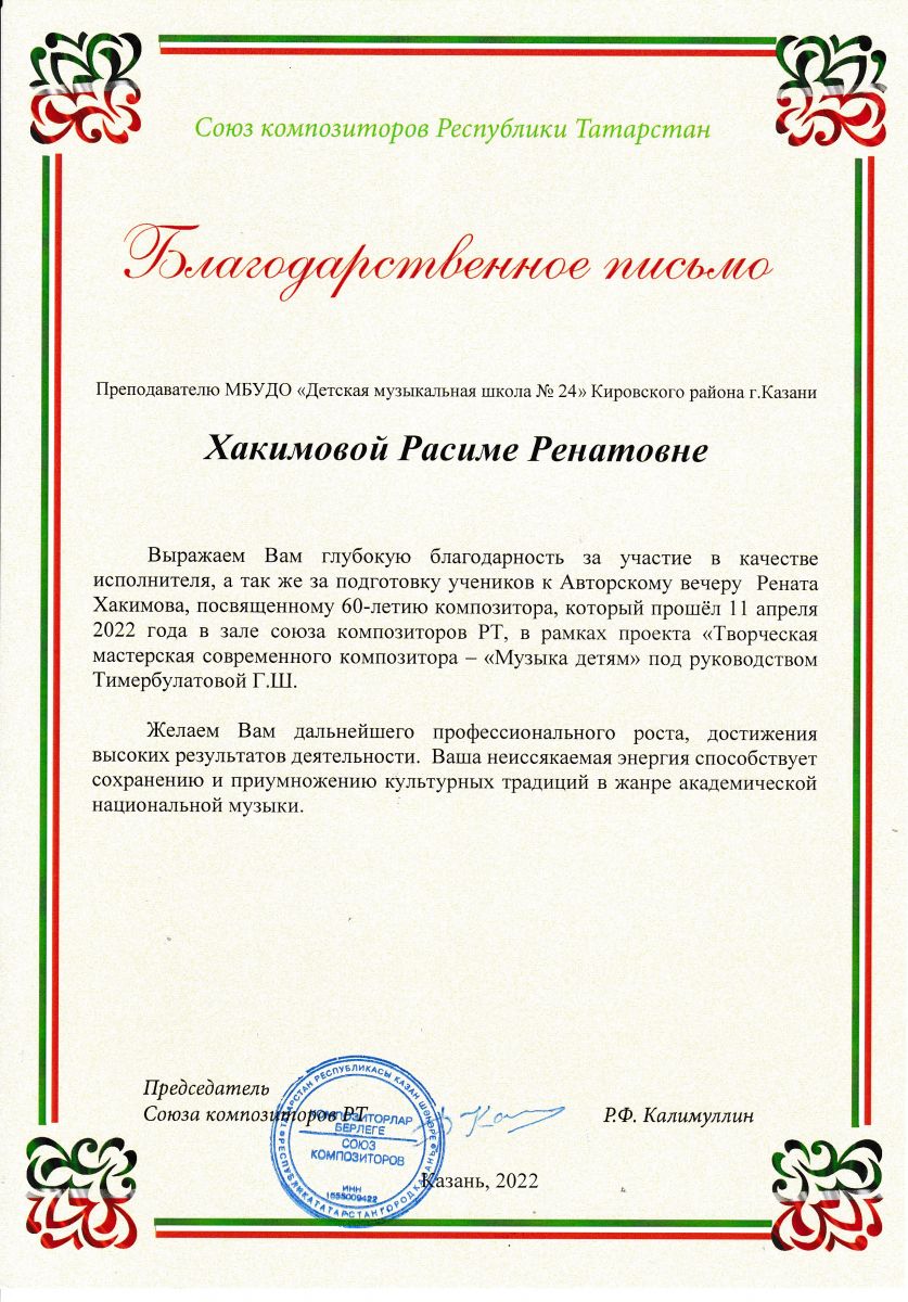 Творческий вечер композитора Татарстана Рената_Хакимова.pdf /Приказ /Благодарственное письмо