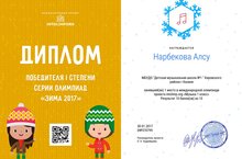 Нарбекова Алсу - победитель 1 степени; Кадирметова Камила - призер 2 степени; Носов Артем - призер 2 степени; Осипенко Полина - призер 3 степени.