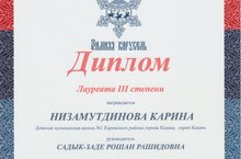 Поздравляем ученицу 2 класса фортепианного отделения Низамутдинову Карину - лауреата III степени XXI Международного интернет-конкурса «Зимняя карусель». Желаем новых достижений Карине и преподавателю Садык-Заде Рошан Рашидовне.
