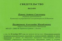 В рамках VI Алишевских чтений прошел мастер-класс старшего преподавателя КГК им. Н.Г. Жиганова, лауреата Всероссийских и международных конкурсов Попова Антона Сергеевича с учащимися преподавателя ДМШ № 1 Настаушева Александра Михайловича. В мастер-классе приняли участие: Романова Елена, 7 класс (аккордеон) и Сафиуллина Диляра, 7 класс (аккордеон).