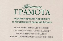Благодарственными письмами Отдела образования Кировского и Московского районов Казани отмечена работа преподавателей - Сайфутдиновой А.С., Михайловой В.М., Ворошиловой Н.А.