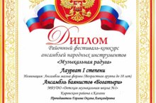 И вновь победы, победы на районном фестивале-кокнурсе ансамблей народных инструментов "Музыкальная радуга".