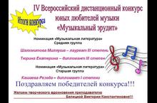 Итоги IV Всероссийского дистанционного конкурса юных любителей музыки «Музыкальный эрудит» 08.04.2013