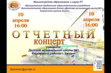10 апреля в 16.00 ОТЧЕТНЫЙ КОНЦЕРТ учащихся Детской музыкальной школы №1 Кировского района г.Казани 08.04.2013