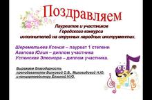 Поздравляем Лауреатов и участников Городского конкурса исполнителей на струнных народных инструментах. 16.04.2013