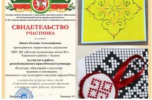 Выступила на круглом столе с темой "Современные тенденции музыкального образования и воспитания: опыт, проблемы, перспектиы" и приняла участие в мастер-классах по изготовлению славянского оберега и созданию национального орнамента с помощью современных художественных техник".