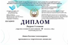 Евгения Александровна Ляшко - Лауреат 1 степени Всероссийского педагогического конкурса в номинации "Профессиональное мастерство преподавателя музыкально-теоретических дисциплин ДШИ и ДМШ"!