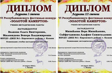 Волкова Ольга Викторовна и Миловидова Венера Владимировна - диплом лауреата 1 степени; Михайлова Вера Михайловна и Сайфутдинова Альфия Самигулловна - диплом лауреата 3 степени конкурса-фестиваля "Золотой камертон" в номинации "учебно-методические работы"