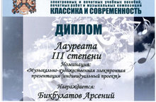Арсений Бикбулатов - лауреат 3 степени международного конкурса "Классика и современность". Для конкурса Арсений подготовил проект "История танца".