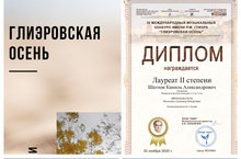 Поздравляем Шатнова Камиля - Лауреата 2 степени 4 Международного музыкального конкурса им. Р.М. Глиэра "Глиэровская осень"!