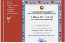 Екатерина Владимировна Капрович прошла стажировку по теме "Компьютерная графика в Inkscape и анимация в Scratch: от создания фона и объектов до готового видеоролика".